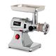440x240х510 мм, 1,1 кВт, 220В, 300 кг/час, реверс, система UNGER (подрезная решётка, нож, решётка, нож, решётка), диаметр отверстий в решётках 6 мм и 10 мм, ножи со сменными лезвиями, мясорубочная часть и шнек - пищевой чугун, ножи и решётки - нержавеющая сталь, лоток и горловина - нержавеющая сталь. Диаметр загрузочной горловины для продукта 52 мм, диаметр горловины шнека и диаметр решеток 82 мм.