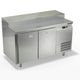 1390х700х850мм, Охлаждаемый стол для пиццы, боковое расположение агрегата. Столешница и корпус из нержавеющей стали марки AISI 430. Задняя панель и дно из оцинкованной стали. 2 двери. Температурный режим +2...+10, глубина рабочего стола 324 мм, напряжение 220В, мощность 320Вт, внутренний объем стола 350л, в зону под гастроёмкости помещается 7 GN 1/3 глубиной 150мм, полезный объём стола 244л. Компрессор (Испания). Хладон R-134. Петля доводчик (Польша). Полка решетка регулируемая по высоте с шагом - 45 мм, гастронормированная, нагрузка 35кг. Нога опорная круглая, регулировка 50мм (Италия). Поставляется в собранном виде.